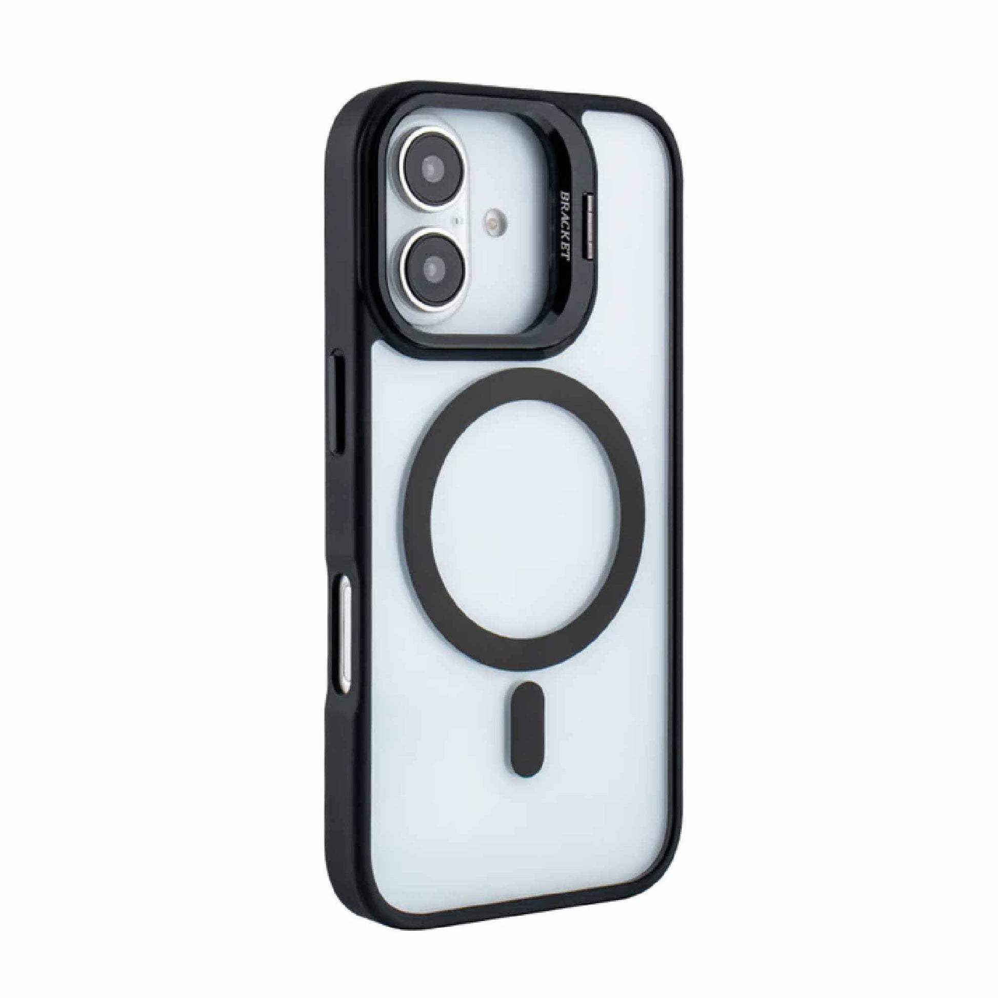 A slim clear-backed case with a color bumper, magnetic “MagSnap” plate for mounts, and a built-in invisible kickstand for hands-free viewing. Raised bezels help protect the screen and camera. Built precisely for iPhone 16 Plus.